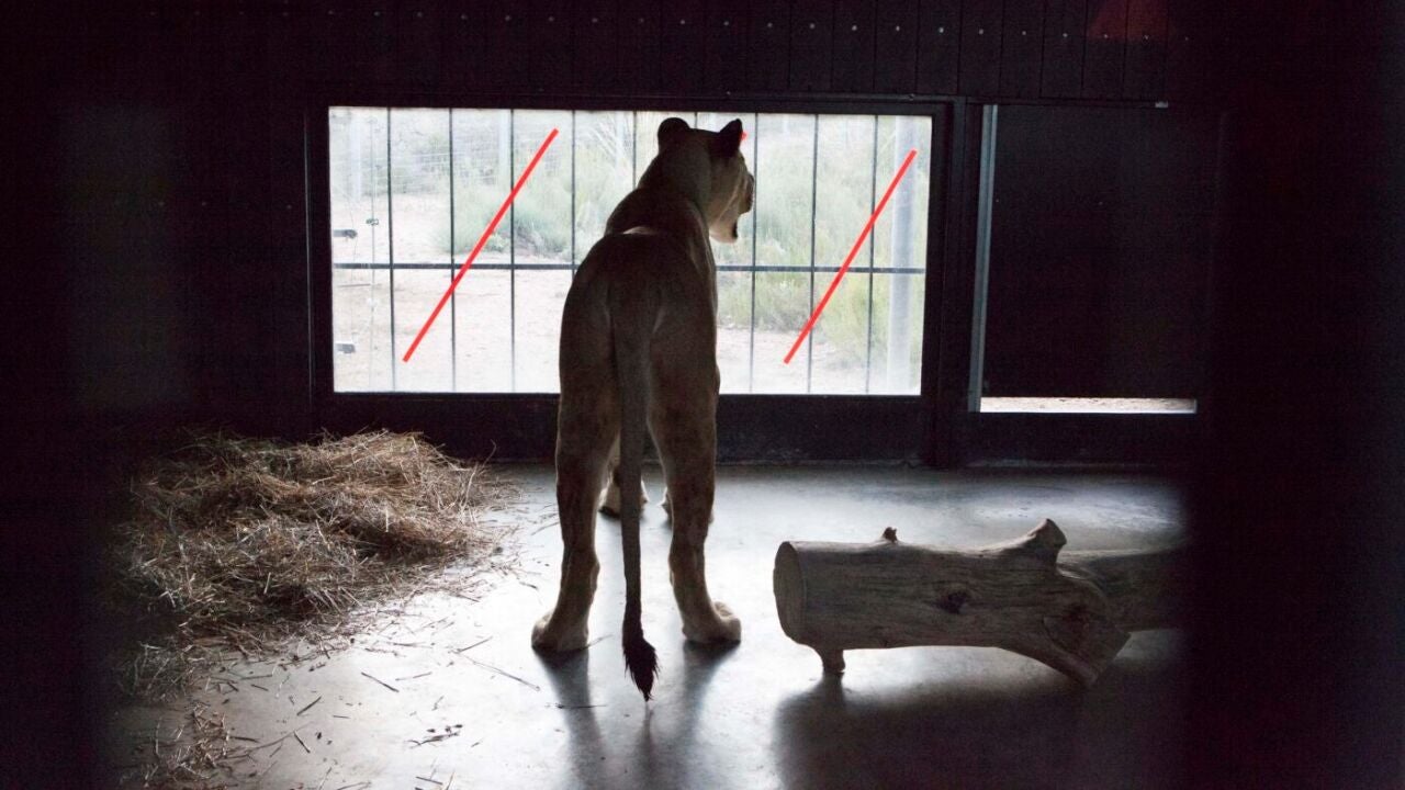 "A día de hoy, Ruru se encuentra todavía en la etapa de cuarentena, un periodo con toda clase de chequeos veterinarios para asegurarnos de que está en las mejores condiciones posibles antes de comenzar con la rehabilitación. Él llegó aquí bastante alterado por todo el estrés de la guerra y su traslado. Además, el hecho de que su antiguo propietario lo castrase le ha impedido desarrollar la característica melena de los leones adultos", narra Pablo Delgado.