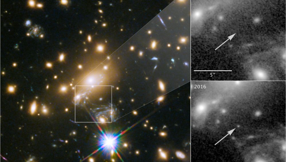 Hasta ahora solo se habían observado supernovas o explosiones de estrellas a una distancia tan lejana, pero un equipo internacional de astrónomos ha localizado a 14.000 años luz a una estrella individual, a la que han bautizado como Ícaro, gracias al telescopio espacial Hubble.