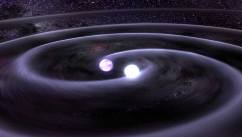 Las estrellas un sistema binario se acercan por la emisión de ondas gravitatorias