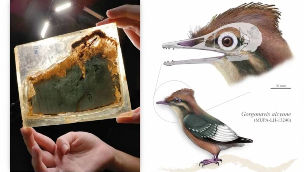 En esa misma línea de investigación sobre la fauna aviaria de Las Hoyas, un nuevo trabajo presenta una nueva especie de enantiornita: Gorgonavis alcyone. El nombre de la especie alude a las Gorgonas de la mitología griega, como Medusa, capaces de convertir en piedra a quien las mirara y a las que solo se podía vencer cortándoles la cabeza. El guiño no es casual: el ejemplar hallado está representado precisamente por una pequeña cabeza aislada.