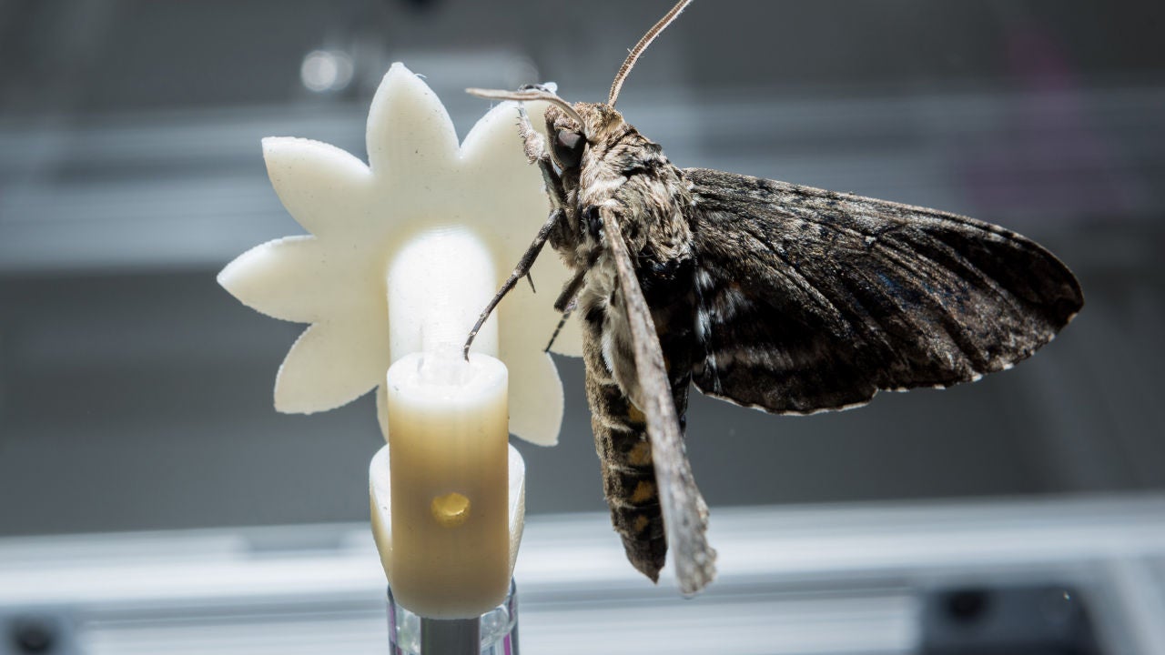 Su objetivo era comprobar durante cuánto tiempo la probóscide –la ‘trompa’– de los insectos permanecía unida a unas flores robóticas que dispensaban néctar y que efectuaban diversos movimientos a distintas velocidades.