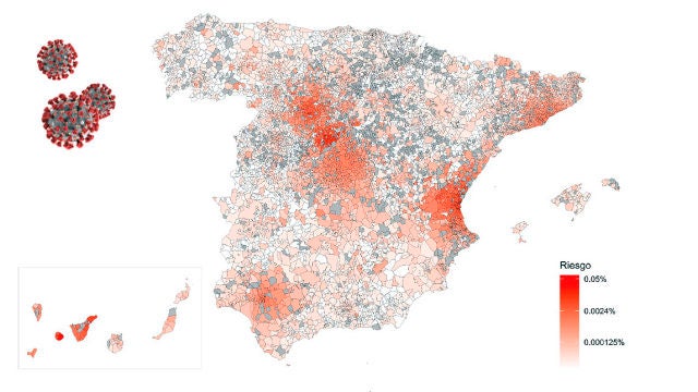 Un modelo matemático permite predecir el riesgo de nuevos casos de contagio que existe en los municipios de España