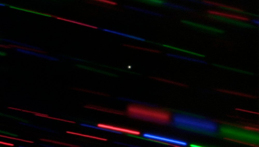 La semana pasada, científicos del Observatorio Gemini en Mauna Kea (Hawái, EE UU) ofrecieron las primeras imágenes de 2020 CD₃, que aparece como un diminuto punto luminoso al que ha seguido su telescopio, en medio de un colorido arrastre de estrellas que aparece alrededor.