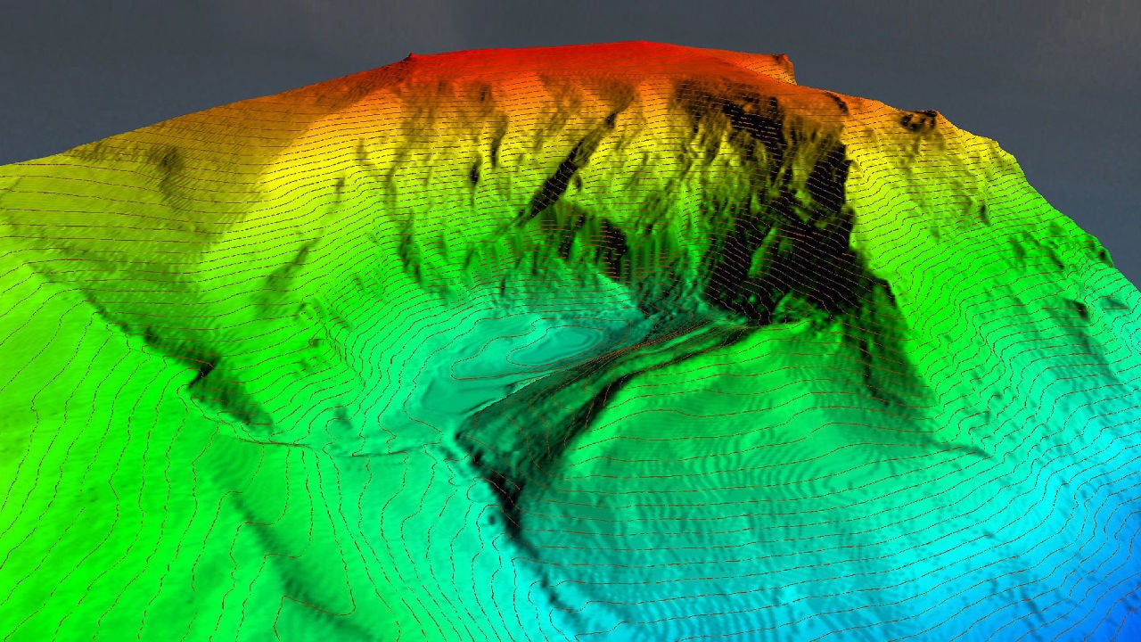 Con una ecosonda de 250 gramos, una barca hinchable y los datos LiDAR ya disponibles se pueden generar estos modelos 3D en alta resolución