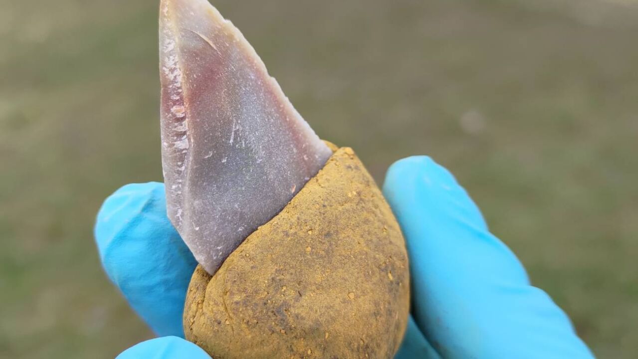 La mezcla era lo suficientemente pegajosa como para que una herramienta de piedra se quedara pegada en ella, pero sin adherirse a las manos, lo que la convertía en un material adecuado para un mango.
