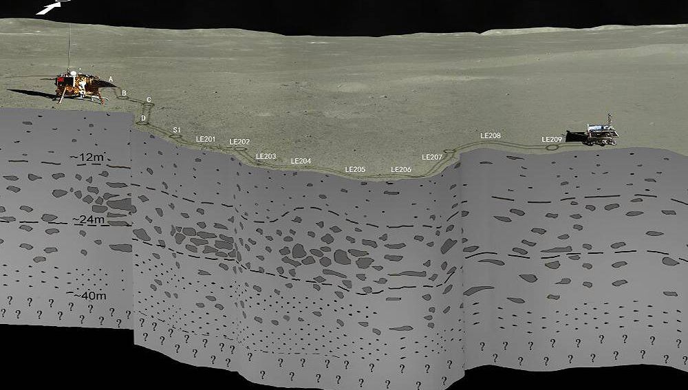 El radar del rover chino Yutu-2 ha penetrado hasta 40 metros bajo la superficie lunar para descubrir una estructura de tres niveles con material fino y rocas eyectadas por los impactos que ha sufrido nuestro satélite