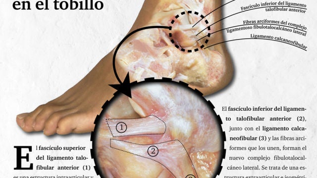 La descripción de esta estructura anatómica ha sido posible gracias al examen de unas fibras que conectan dos de los componentes del ligamento colateral lateral. Además, por primera vez se describe una de las partes de esta nueva estructura como intraarticular. Estos resultados, publicados en Knee Surgery, Sports Traumatology, Arthroscopy, cambian la comprensión de esta articulación y podrían explicar por qué muchos esguinces de tobillo producen dolor incluso meses o años después de la lesión inicial.