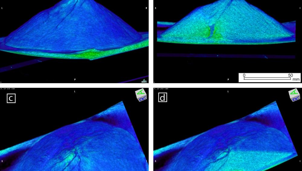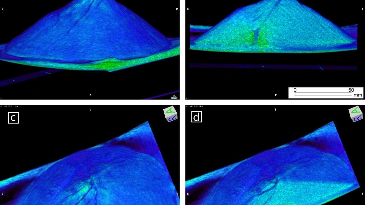 Las imágenes tridimensionales que ofrece el escáner muestran cómo el magma penetra lentamente en el volcán, deformándolo y creando fracturas similares a las que se vieron en el Mount Saint Helens antes de su erupción. “En algunos experimentos el magma entró en la parte del volcán que luego colapsó; el peor de los escenarios. En esos casos las fracturas de la superficie del volcán muestran un patrón singular. Esto abre la posibilidad a la aplicación de los resultados de este trabajo en la vigilancia de la deformación de un volcán antes de su erupción”, explica Marta Rincón.
