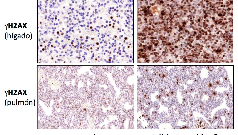 “En los organismos adultos, la producción y maduración de glóbulos rojos ocurre en la médula ósea, pero durante el desarrollo embrionario se produce principalmente en el hígado fetal. En los animales deficientes en MCM3, las células madre del hígado fetal están deterioradas y los embriones desarrollan una forma grave de anemia que impide que lleguen a nacer. Podríamos decir que el estrés replicativo convierte a las células madre fetales, que deberían de funcionar perfectamente, en células muy envejecidas. Esto lo hemos comprobado mediante experimentos de transplante, en los que las células fetales con estrés replicativo no son capaces de reconstituir adecuadamente el sistema sanguíneo en animales receptores”, agrega.