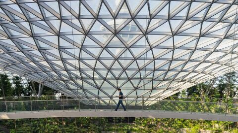 Pasa por ser el mejor aeropuerto del mundo, es de hecho el más espectacular porque cuenta con una gran cúpula de cristal en el que descubrirás la cascada interior más alta del mundo; además en este aeropuerto hay jardines de girasoles y orquídeas, mariposas, toboganes gigantes, una piscina en la azotea e incluso proyecciones de cine de acceso gratuito. De este aeropuerto no solo disfrutan los viajeros sino también los residentes en la zona que lo tienen como lugar de paseo y restauración.