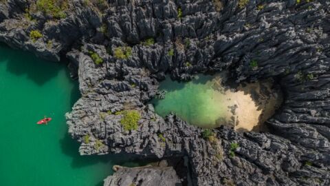 Seguimos en el agua, no en vano estamos en verano y buscamos actividades refrescantes, pero nos vamos a un lugar muy diferente y en kayak, al Geoparque Mundial de la Unesco de Satun, perfecto para los amantes de las rutas a remo, de los enamorados de la historia que cuentan los fósiles y de la naturaleza; te sorprenderán los pináculos kársticos de Prasat Hin Payod, las cuevas de esta zona y muy especialmente su laguna escondida a la que llegar es toda una aventura porque tendrás que recorrer un tramo en una embarcación antes de lanzarte al agua con tu kayak.