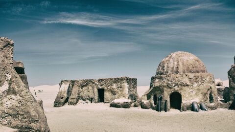 Y acabamos porque decíamos que era imposible no empezar... la saga de la Guerra de las Galaxias, decimos la saga porque fueron varias las películas de esta trilogía multiplicada que se rodaron en Túnez (La amenaza fantasma, El ataque de los clones y La Venganza de los Sith además de Una nueva esperanza): el cañón de Sidi Bouhel (el mismo en el que se perdió el Arca de la Alianza en Indiana Jones) es también el cañón de Star Wars en elq ue R2D2 es capturado por los jawas; el famoso lago salado Chott el Djerid es el lugar donde estaba el iglú de la grande de los Lars y el pueblo troglodita de Mahmata (un pueblo escavado en la roca) sirvió de escenario para la casa de Luke Skywalker en el Episodio IV; la isla de Djerba también sale en la saga de las galaxias porque allí estaba la casa de Obi Wan Kenobi o la cantina del puerto espacial de Mos Eisley en la que Luke conoce a Han Solo y al inolvidable Chewbacca.
