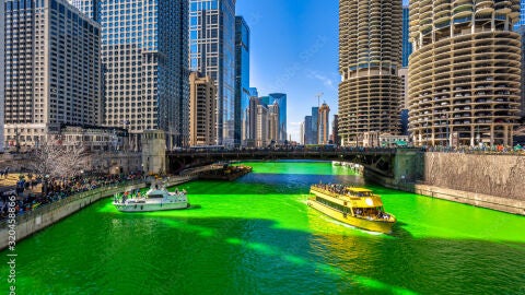 Chicago también se tiñe de verde para celebrar San Patricio (ellos sí respetan la fecha, el 17 de marzo), no se trata de una celebración tan antigua como la de Nueva York pero cuenta también con larga historia, el primer desfile de San Patricio en Chicago salió en el año 1843.