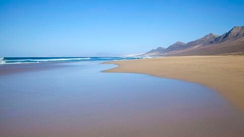 La de Cofete es una playa inmensa e inmensamente maravillosa: está al sur, muy al sur, de Fuerteventura, mide casi 14 kilómetros de largo y unos 50 metros de ancho de media a lo largo de toda la línea de playa, está tan poco concurrida que aquí el nudismo es, sin duda, una opción; ¿inconvenientes? el clásico de una playa virgen, su acceso que en coche es complicado; también debes ser prudente a la hora de bañarte, se trata de una playa en la que el viento y el oleaje son una constante.
